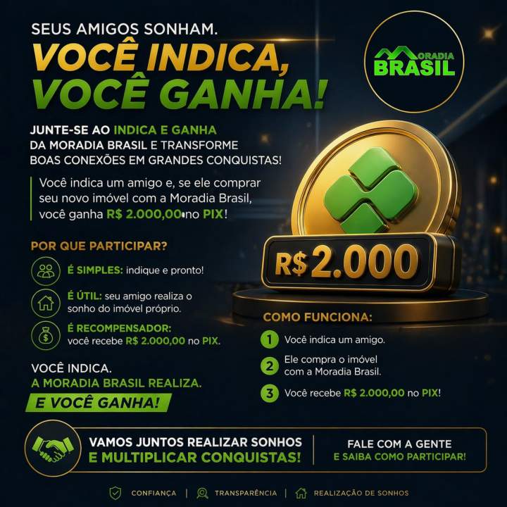 A Moradia Brasil apresenta o regulamento da campanha "Indica e Ganha", criada para recompensar parceiros e clientes que indicarem novos compradores para nossos empreendimentos. Esta campanha pauta-se pela transparência, ética e valorização da nossa rede de relacionamentos.